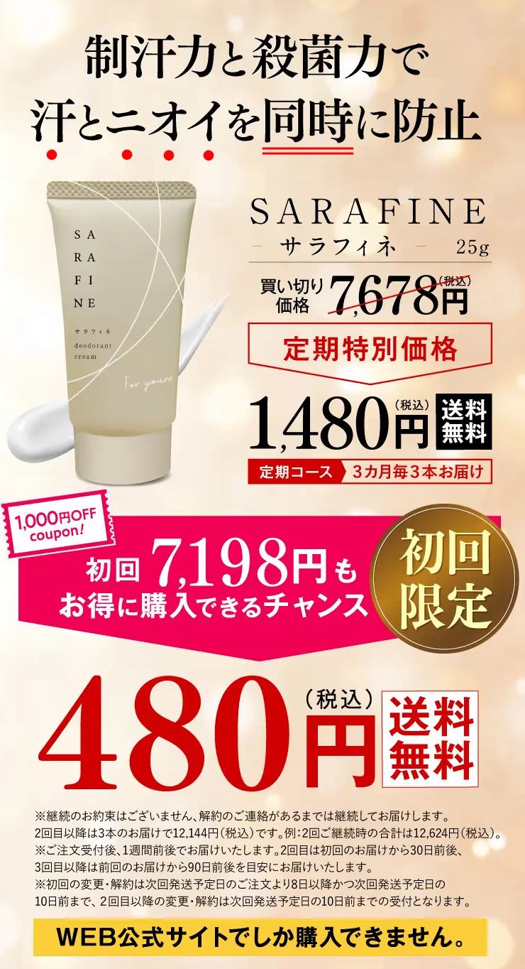 | 特徴 | 「サラフェプラス」は、ワキガや制汗に悩む人のための制汗・消臭剤です。この製品は、肌に負担をかけずに汗やニオイを抑えることができるとされています。「サラフェプラス」には、サラフェノールという特許成分が含まれています。この成分は、汗腺の分泌を抑制する効果があるとされており、制汗効果が期待できます。また、消臭成分として、キシリトールやグリチルリチン酸ジカリウムが含まれており、ニオイを抑える効果もあります。使用方法は、入浴後に清潔な状態でワキを乾かし、ワキに塗布します。使用前にパッチテストを行い、異常がなければ使用するようにしてください。また、肌に合わない場合は、使用を中止してください。「サラフェプラス」は、無香料であり、アルミニウム塩やパラベン、エタノールなどの刺激成分が含まれていないため、敏感肌の人でも使用することができます。ただし、個人差があるため、すべての人に効果があるわけではありません。 |