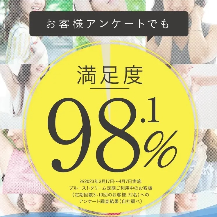 ※1:2024年11月30日時点のプルーストクリーム累計出荷本数。※2:2023年3月17日~4月7日実施プルーストクリームの定期ご利用中のお客様(定期回数3~10回のお客様172名)へのアンケート調査結果(自社調べ)