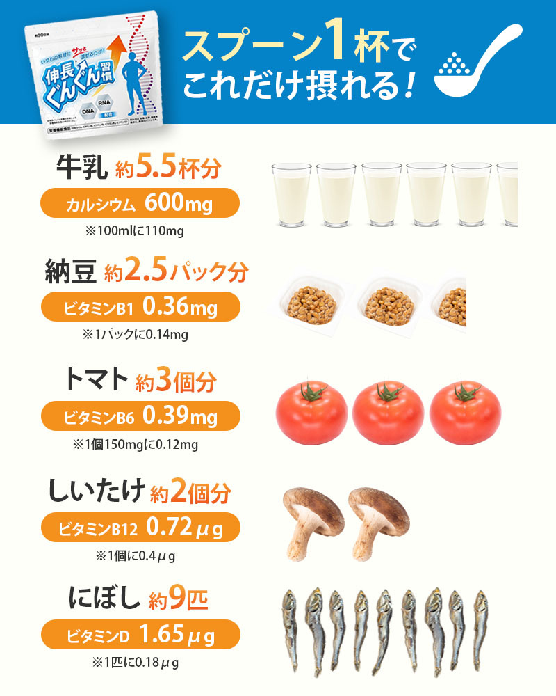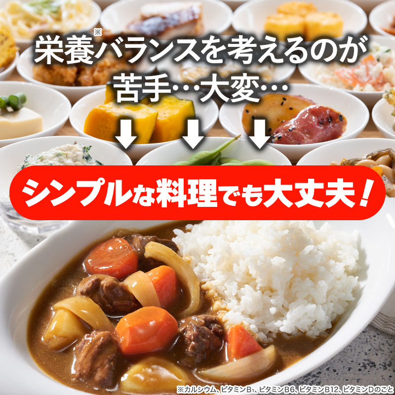 ※カルシウム、ビタミンB₁、ビタミンB6、ビタミンB12、ビタミンDのこと