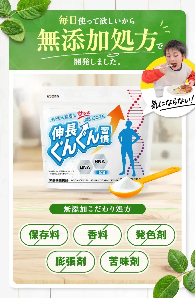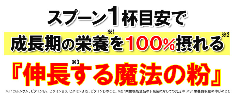 無味タイプの子供向け成長期サポート栄養機能食品として日本唯一
